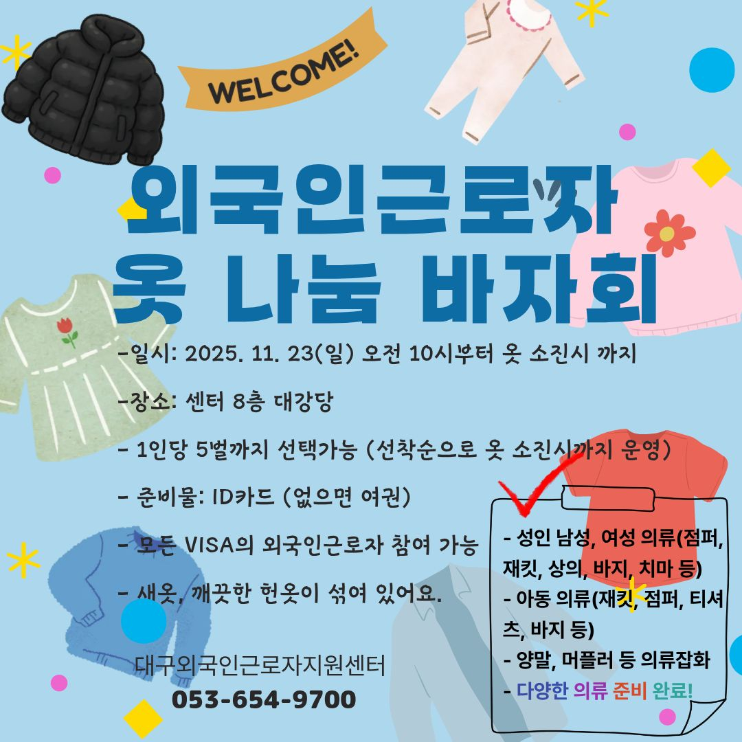 2025년 11월 23일 외국인근로자 옷 나눔 바자회 실시 안내