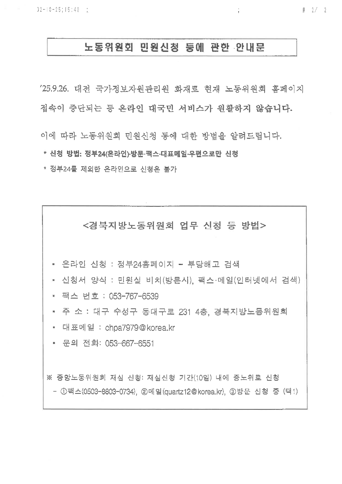 [경북지방노동위원회]노동위원회 홈페이지 접속 일시 중단, 민원신청 안내