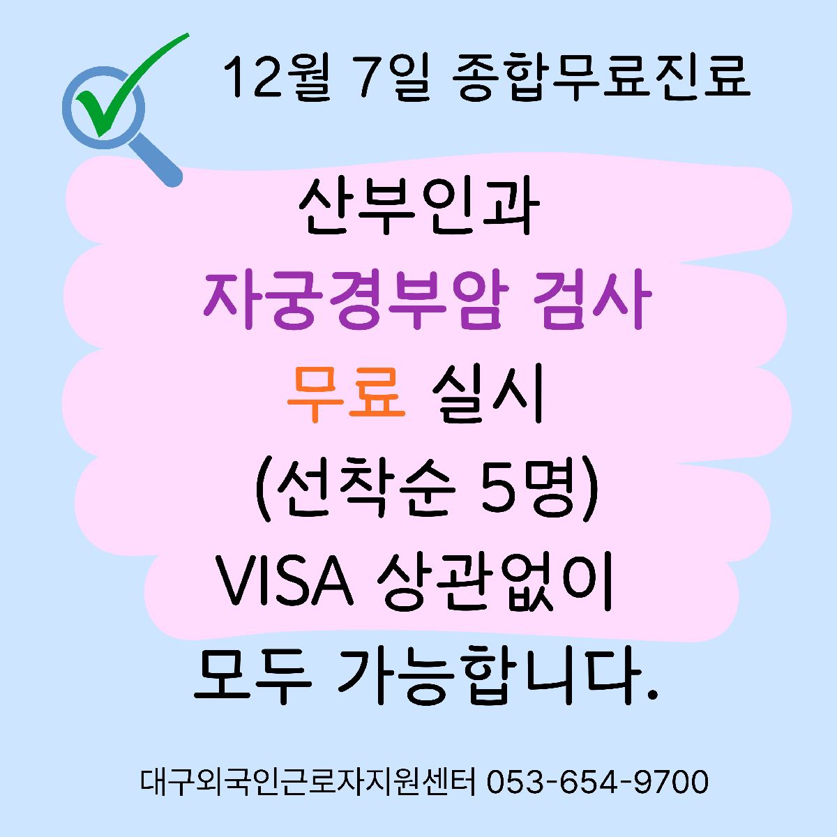 2025년 12월 7일 종합무료진료 자궁경부암 검사 실시 안내