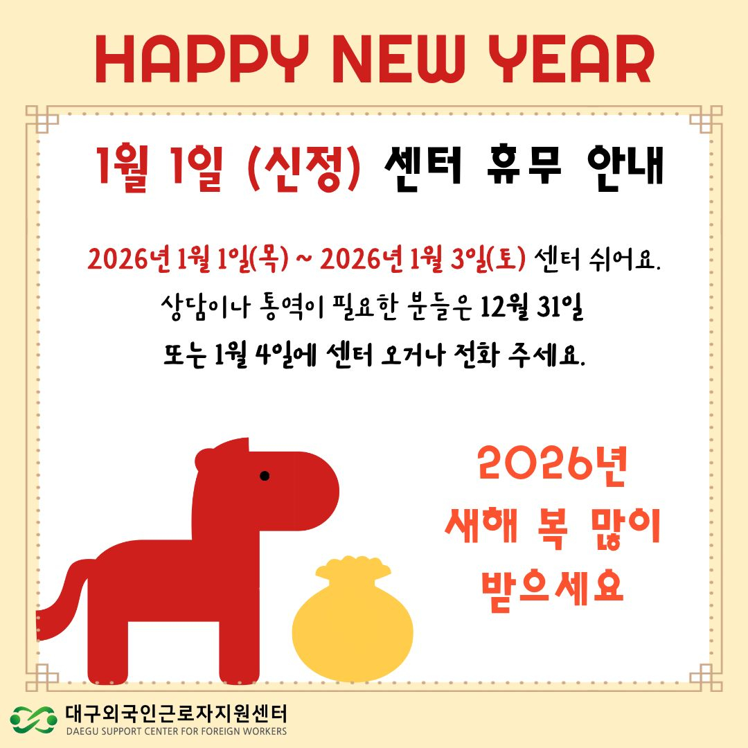 2026년 1월 1일 센터 휴무 안내